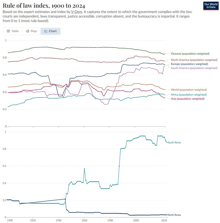 That difference is also visible in people living in different countries. People from North vs South Korea come from the same background. But as shown below, things changed when they split up.